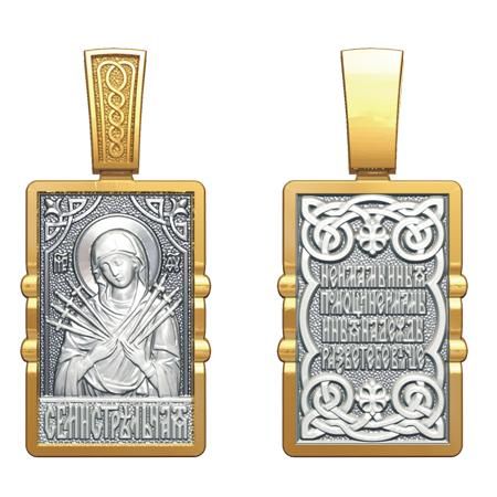 На иконе "Семистрельная" Пресвятая Богородица изображается пронзенной семью стрелами, вместо которых часто изображают мечи.